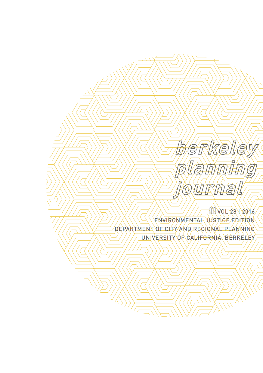 As we prepare to publish the 28th volume of the Berkeley Planning Journal, California is experiencing a fifth year of drought; Haiti has recently been devastated by a massive hurricane and a subsequent cholera epidemic; Louisiana is recovering from finding itself, once again, under massive flooding; and the United States has just elected a president who claims to support oil pipelines and has threatened to pull out of the Paris Climate Agreement. Human potential to harm the environment and expose our most vulnerable populations to environmental hazards has never been clearer. At the same time, we live in an era of tremendous uncertainty as to whether we have the collective capacity to right environmental wrongs. By dedicating this volume of the BPJ to environmental justice, we are seeking to highlight the many ways in which scholars and practitioners across the many subfields of planning are wading through the wicked problems that emerge at the intersection of society and the natural world.